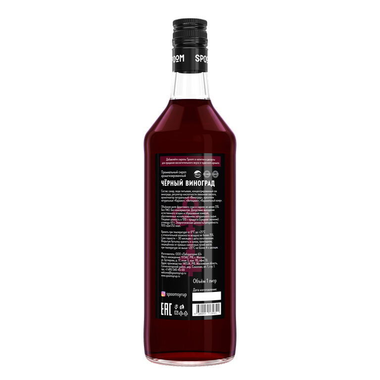 Сироп Spoom Чёрный виноград имеет запах и вкус винограда сорта Изабелла, широко распространённого во всём мире. Во вкусе данного продукта хорошо чувствуются выразительные виноградные нотки. В аромате читаются деликатные ягодные тона с оттенками лёгкой винной терпкости. Он идеально подойдёт для создания безалкогольных и алкогольных коктейлей. |