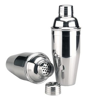 - Металлический шейкер, более удобен прежде всего тем, что его невозможно разбить и он позволяет контролировать температуру коктейля при взбивании.