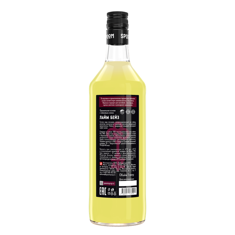 | Премиальная основа с лаймовым соком Лайм Бейз SPOOM - идеально подходит для коктейлей, лимонадов, горячих напитков, десертов, соусов, в качестве салатной заправки, а также для блюд из мяса, птицы и рыбы. Лайм Бейз содержит не менее 70% сока лайма, а по вкусовым и ароматическим параметрам лаймовая основа соответствует свежевыжатому соку лайма. После вскрытия хранится шесть месяцев. |